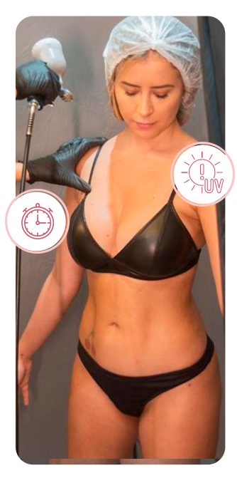 Aplicação rápida, sem exposição solar e pele hidratada.