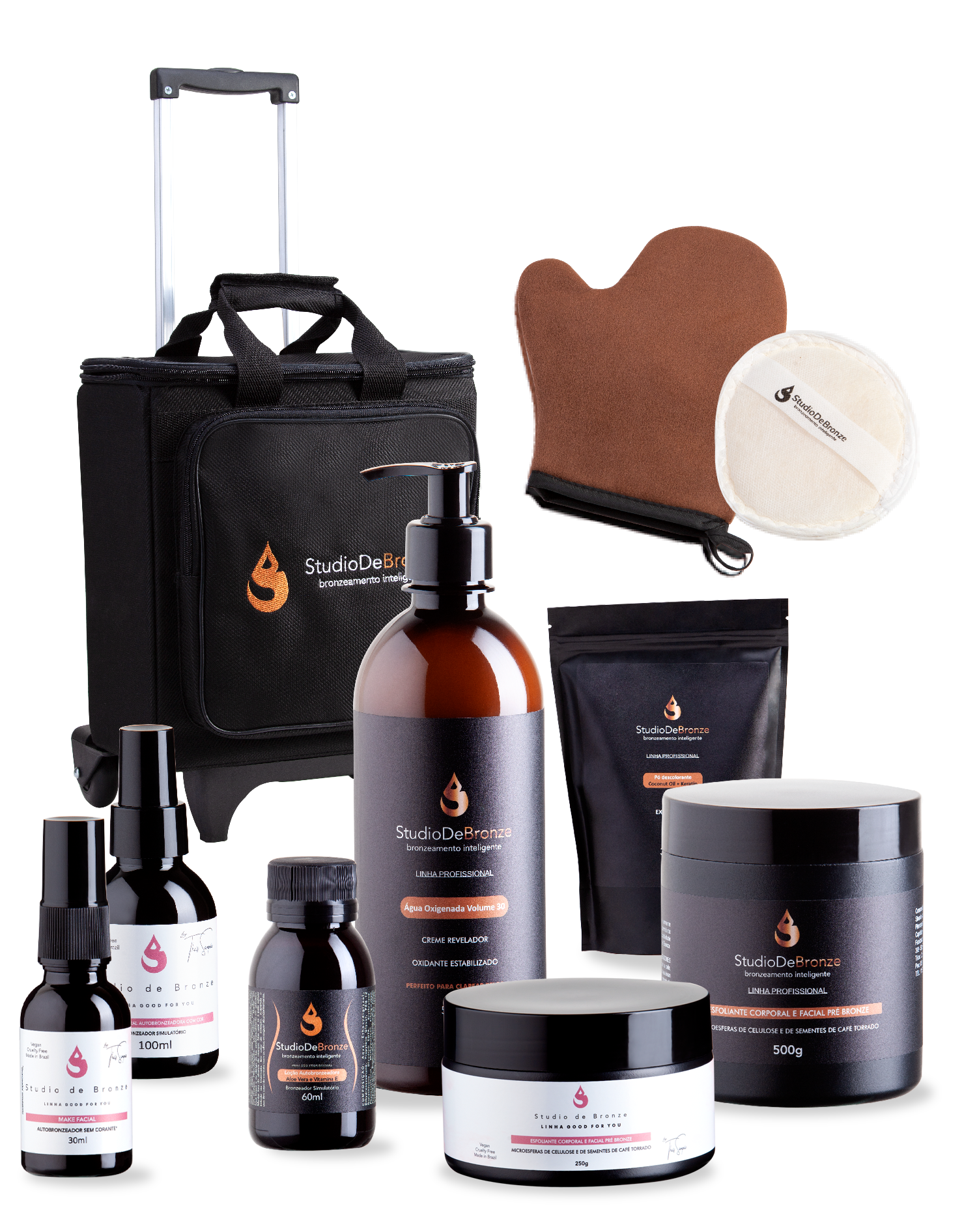 Método inovador, produtos vegano, fórmula leve, de rápida absorção, não alaranja e não mancha a pele.