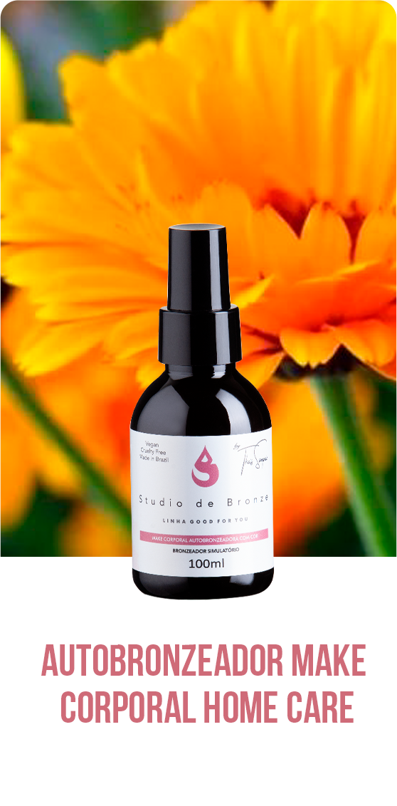 Quebramos todos os paradigmas sobre Bronzeamento Artificial. Vegano, aprovado pela Anvisa, cor dourada, seca instanteneamente. Linha completa de produtos para autobronzeamento.